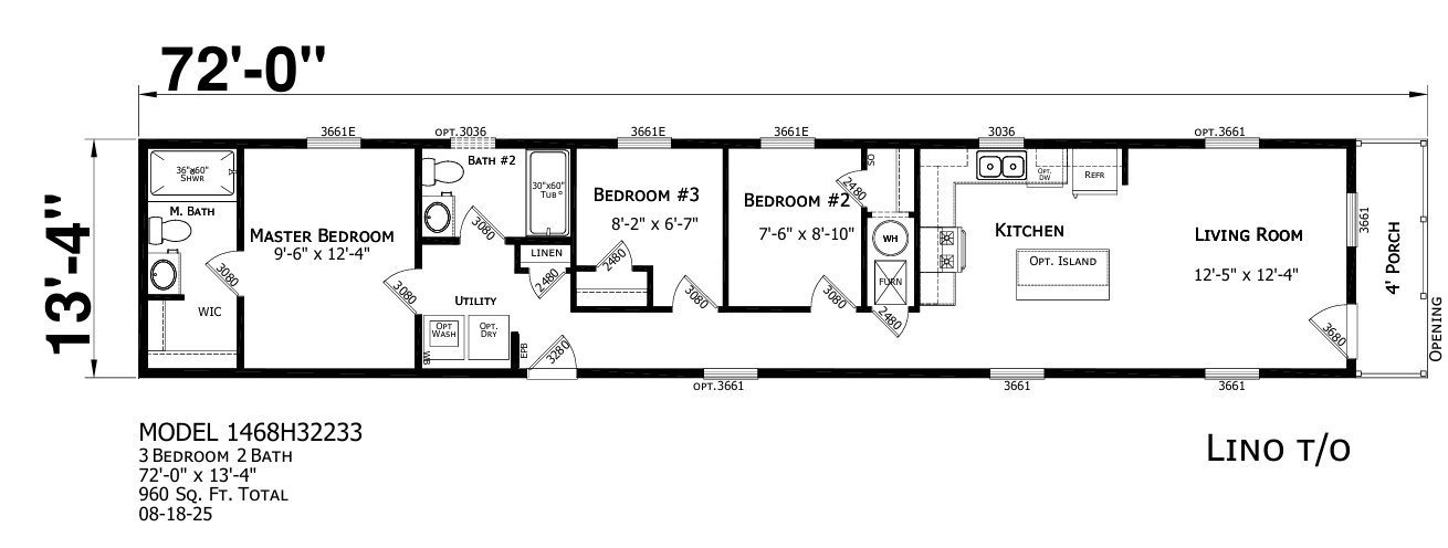 Part of J Redman’s Advantage Series, this home offers 3 bedrooms, 2 bathrooms, and 907 square feet of total living space! This home is shown with an optional kitchen island and a 4’ front porch. This series can be ordered with or without the porch and comes in a 2 bedroom option as well.